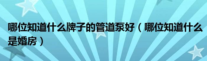 哪位知道什么牌子的管道泵好(哪位知道什么是婚房)