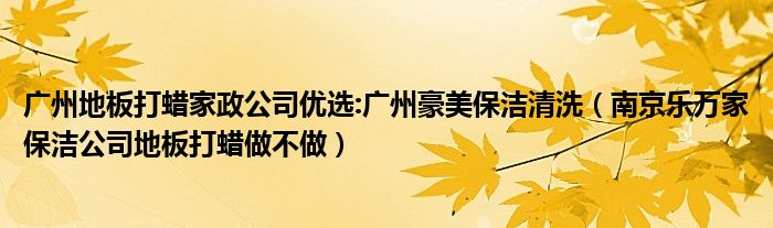 广州地板打蜡家政公司优选:广州豪美保洁清洗(南京乐万家保洁公司地板打蜡做不做)