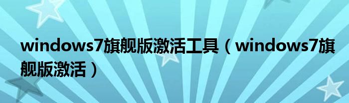 windows7旗舰版激活工具(windows7旗舰版激活)
