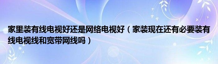 导读 大家好,小编慧慧来为大家解答以上的问题。家里装有线电视好还是网络电视好,家装现在还有必要装有线电视线和宽带网线吗很多人还不知道,现