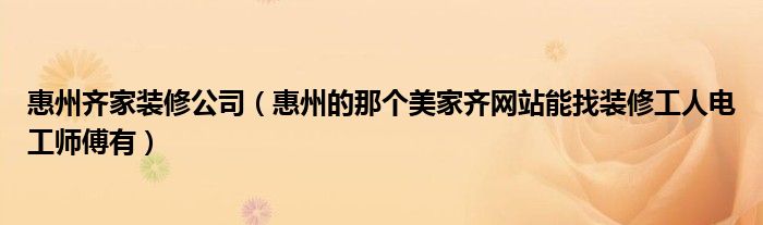 导读 大家好,小编慧慧来为大家解答以上的问题。惠州齐家装修公司,惠州的那个美家齐网站能找装修工人电工师傅有很多人还不知道,现在让我们一起