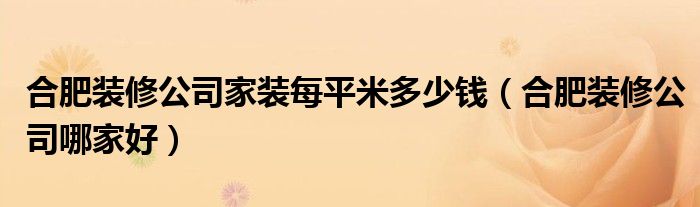 导读 大家好,小编慧慧来为大家解答以上的问题。合肥装修公司家装每平米多少钱,合肥装修公司哪家好很多人还不知道,现在让我们一起来看看吧!1