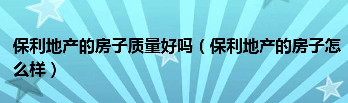 保利地产的房子质量好吗(保利地产的房子怎么样)