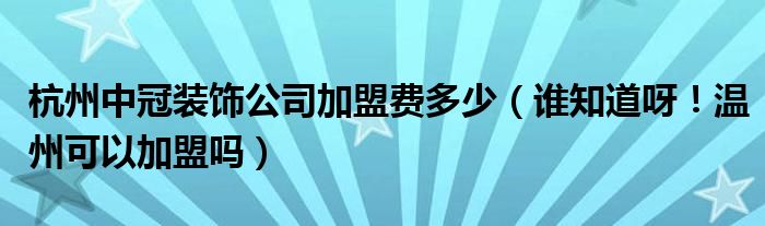 杭州中冠装饰公司加盟费多少(谁知道呀!温州可以加盟吗)