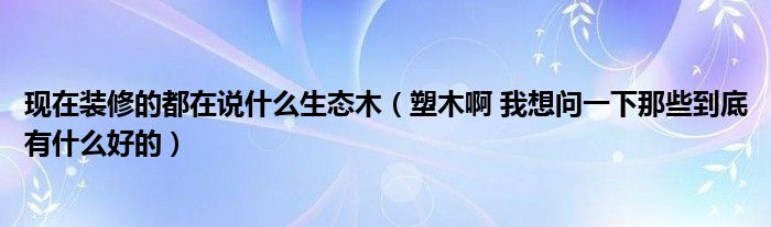 导读 大家好,小编慧慧来为大家解答以上的问题。现在装修的都在说什么生态木,塑木啊 我想问一下那些到底有什么好的很多人还不知道,现在让我们