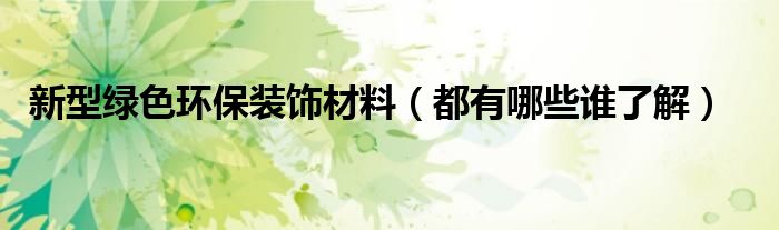 大家好,小编慧慧来为大家解答以上的问题。新型绿色环保装饰材料,都有哪些谁了解很多人还不知道,现在让我们一起来看看吧!