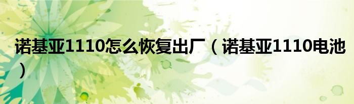 诺基亚1110怎么恢复出厂(诺基亚1110电池)
