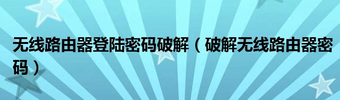 大家好,麟非来为大家解答以上问题,无线路由器登陆密码破解,破解无线路由器密码很多人还不知道,现在让我们一起来看看吧!