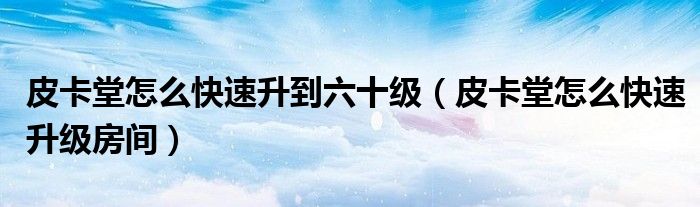 皮卡堂怎么快速升到六十级(皮卡堂怎么快速升级房间)