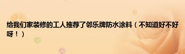 导读 大家好,小编慧慧来为大家解答以上的问题。给我们家装修的工人推荐了邻乐牌防水涂料,不知道好不好呀!很多人还不知道,现在让我们一起来看