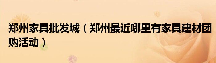郑州家具批发城(郑州最近哪里有家具建材团购活动)