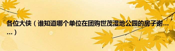 各位大侠(谁知道哪个单位在团购世茂湿地公园的房子谢……)