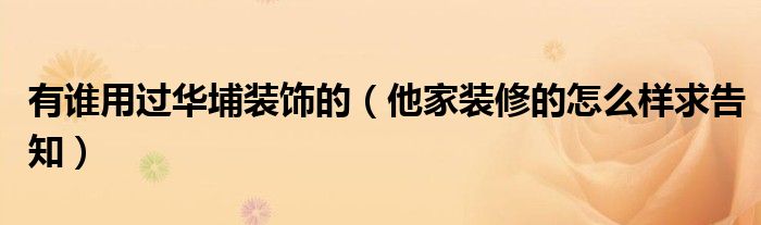 有谁用过华埔装饰的(他家装修的怎么样求告知)