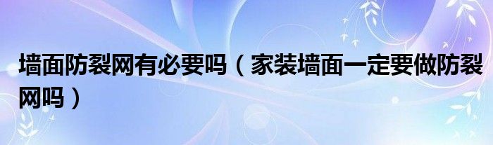 墙面防裂网有必要吗(家装墙面一定要做防裂网吗)
