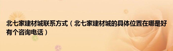 北七家建材城联系方式(北七家建材城的具体位置在哪是好有个咨询电话)