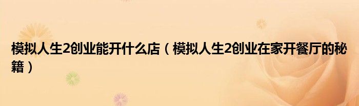 模拟人生2创业能开什么店(模拟人生2创业在家开餐厅的秘籍)