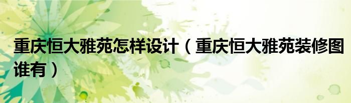 重庆恒大雅苑怎样设计(重庆恒大雅苑装修图谁有)