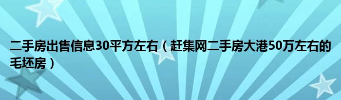 导读 大家好,小编慧慧来为大家解答以上的问题。二手房出售信息30平方左右,赶集网二手房大港50万左右的毛坯房很多人还不知道,现在让我们一起来