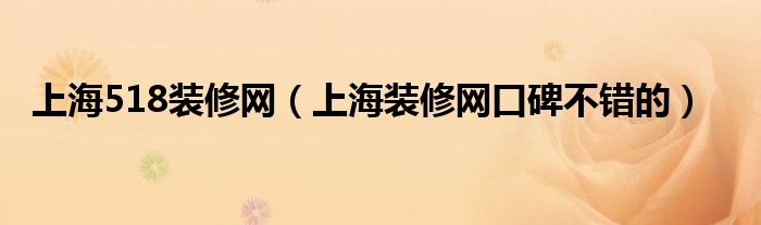 导读 大家好,小编慧慧来为大家解答以上的问题。上海518装修网,上海装修网口碑不错的很多人还不知道,现在让我们一起来看看吧!1、现在很多类似