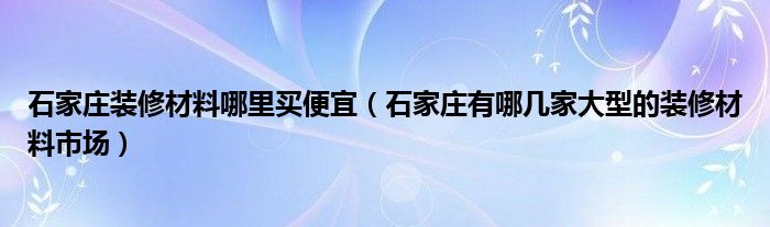 导读 大家好,小编慧慧来为大家解答以上的问题。石家庄装修材料哪里买便宜,石家庄有哪几家大型的装修材料市场很多人还不知道,现在让我们一起来