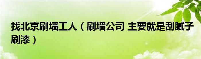 大家好,小编慧慧来为大家解答以上的问题。找北京刷墙工人,刷墙公司 主要就是刮腻子刷漆很多人还不知道,现在让我们一起来看看吧!
