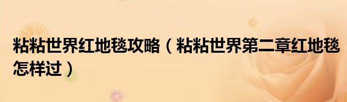 导读 大家好,小编慧慧来为大家解答以上的问题。粘粘世界红地毯攻略,粘粘世界第二章红地毯怎样过很多人还不知道,现在让我们一起来看看吧!1、