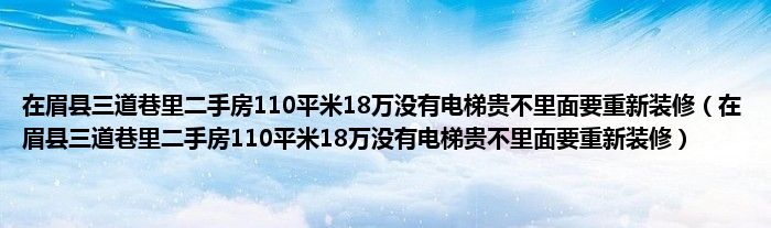 在眉县三道巷里二手房110平米18万没有电梯贵不里面要重新装修(在眉县三道巷里二手房110平米18万没有电梯贵不里面要重新装修)