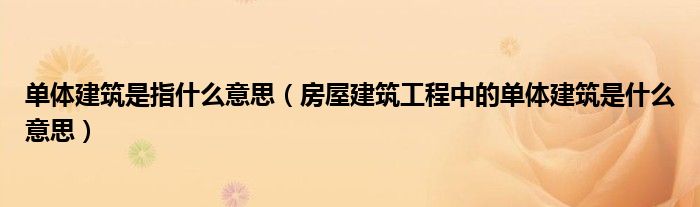 单体建筑是指什么意思(房屋建筑工程中的单体建筑是什么意思)
