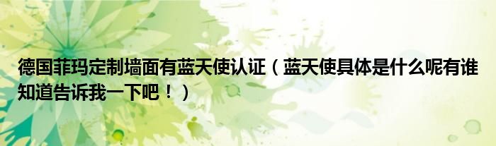 德国菲玛定制墙面有蓝天使认证(蓝天使具体是什么呢有谁知道告诉我一下吧!)