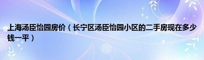 导读 大家好,小编慧慧来为大家解答以上的问题。上海汤臣怡园房价,长宁区汤臣怡园小区的二手房现在多少钱一平很多人还不知道,现在让我们一起来