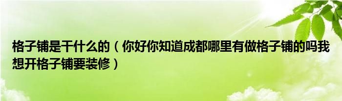 导读 大家好,小编慧慧来为大家解答以上的问题。格子铺是干什么的,你好你知道成都哪里有做格子铺的吗我想开格子铺要装修很多人还不知道,现在让