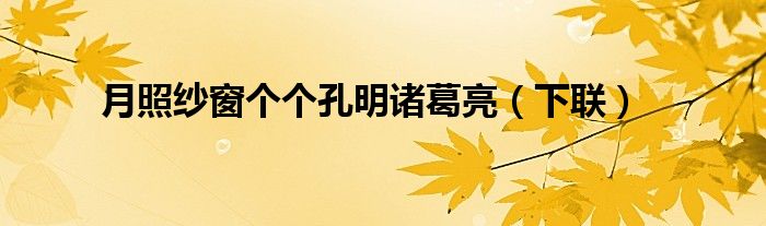 大家好,小编慧慧来为大家解答以上的问题。月照纱窗个个孔明诸葛亮,下联很多人还不知道,现在让我们一起来看看吧!
