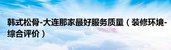 导读 大家好,小编慧慧来为大家解答以上的问题。韩式松骨-大连那家最好服务质量,装修环境-综合评价很多人还不知道,现在让我们一起来看看吧!1