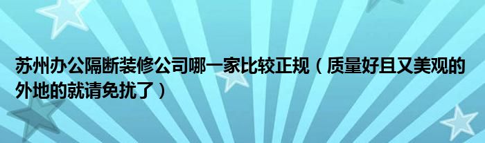 导读 大家好,小编慧慧来为大家解答以上的问题。苏州办公隔断装修公司哪一家比较正规,质量好且又美观的 外地的就请免扰了很多人还不知道,现在