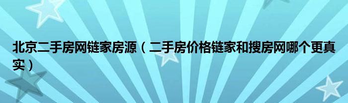 导读 大家好,小编慧慧来为大家解答以上的问题。北京二手房网链家房源,二手房价格链家和搜房网哪个更真实很多人还不知道,现在让我们一起来看看