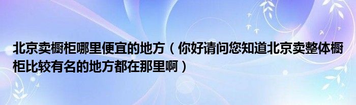 北京卖橱柜哪里便宜的地方(你好请问您知道北京卖整体橱柜比较有名的地方都在那里啊)