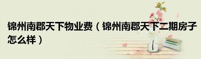 锦州南郡天下物业费(锦州南郡天下二期房子怎么样)