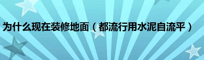 导读 大家好,小编慧慧来为大家解答以上的问题。为什么现在装修地面,都流行用水泥自流平很多人还不知道,现在让我们一起来看看吧!1、所以大家