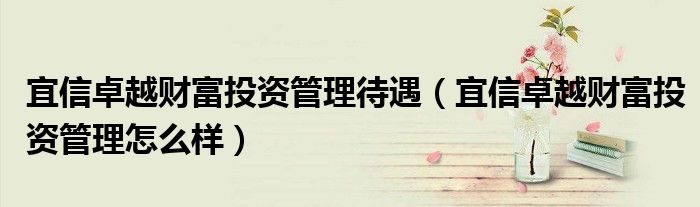宜信卓越财富投资管理待遇(宜信卓越财富投资管理怎么样)