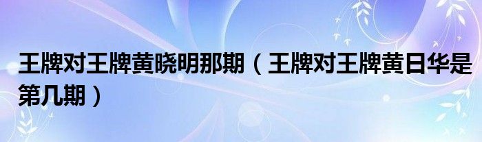 导读 大家好,小编来为大家解答以上的问题王牌对王牌黄晓明那期,王牌对王牌黄日华是第几期这个很多人还不知道,现在让我们一起来看看吧!1、黄日