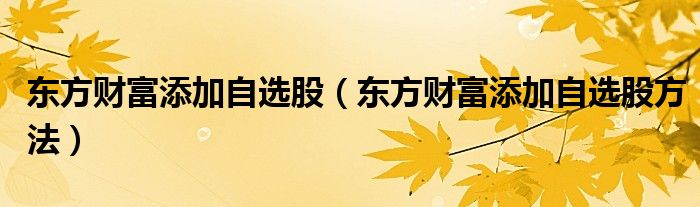 东方财富添加自选股(东方财富添加自选股方法)