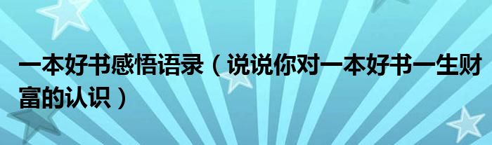 一本好书感悟语录(说说你对一本好书一生财富的认识)