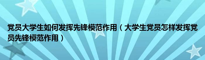 党员大学生如何发挥先锋模范作用(大学生党员怎样发挥党员先锋模范作用)