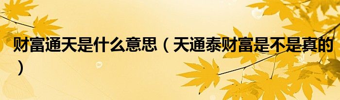 大家好,小编来为大家解答以上的问题财富通天是什么意思,天通泰财富是不是真的这个很多人还不知道,现在让我们一起来看看吧!