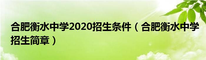 导读 大家好,小编来为大家解答以上的问题合肥衡水中学2020招生条件,合肥衡水中学招生简章这个很多人还不知道,现在让我们一起来看看吧!1、合肥