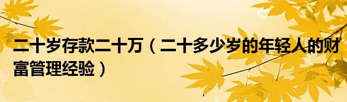 二十岁存款二十万(二十多少岁的年轻人的财富管理经验)