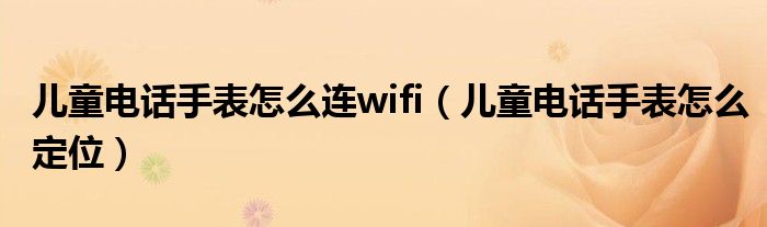 儿童电话手表怎么连wifi(儿童电话手表怎么定位)