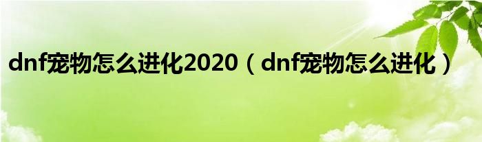 dnf宠物怎么进化2020(dnf宠物怎么进化)