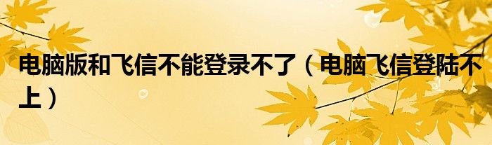 电脑版和飞信不能登录不了(电脑飞信登陆不上)