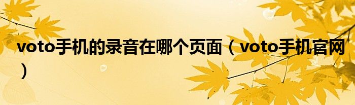 大家好,麟非来为大家解答以上问题,voto手机的录音在哪个页面,voto手机官网很多人还不知道,现在让我们一起来看看吧!
